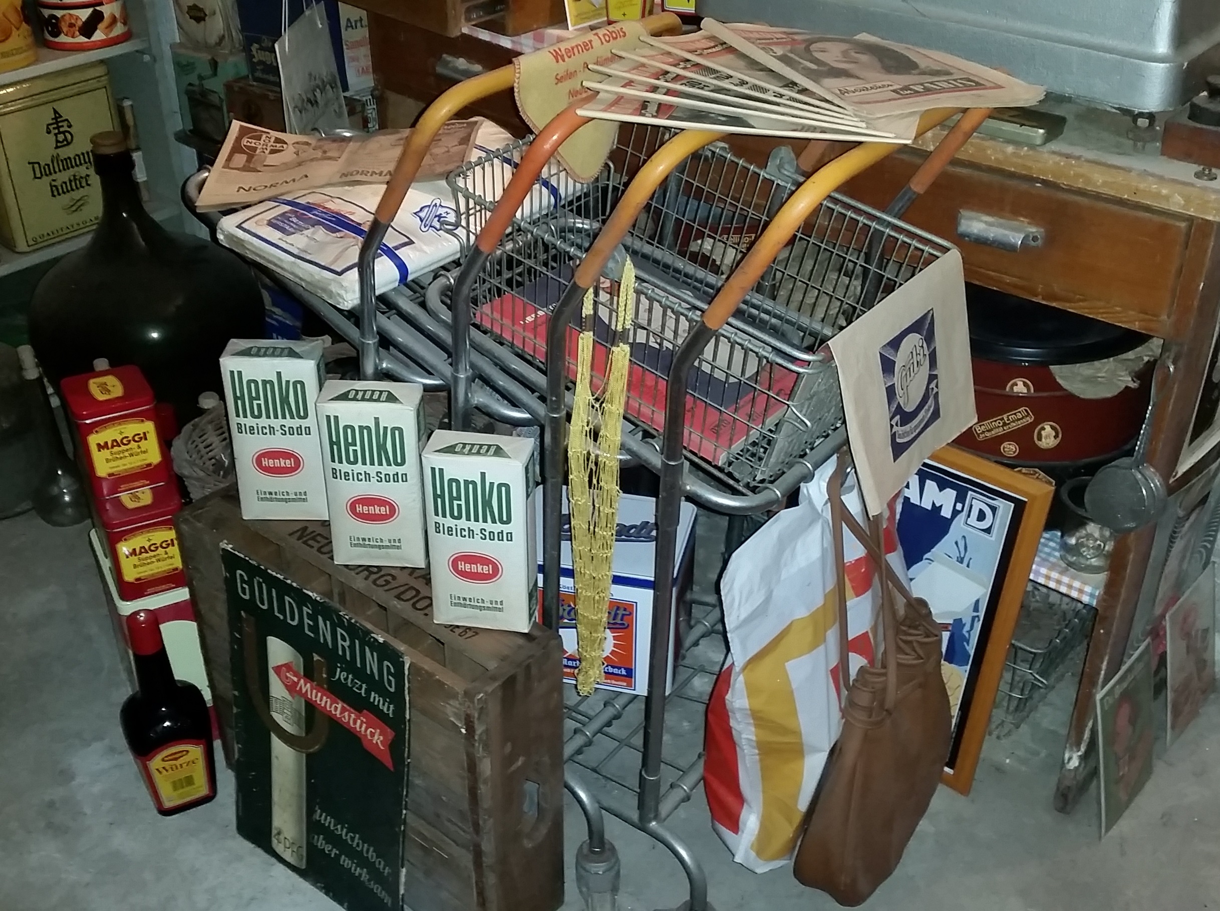 Beim Übergang zum Selbstbedienungsladen waren die Einkaufswagen noch von bescheidener Größe. Sie waren "rollende Körbe".